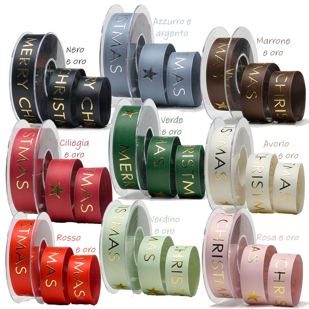 Soft satin edged Merry Christmas ribbon with metallic "Merry Christmas" print.