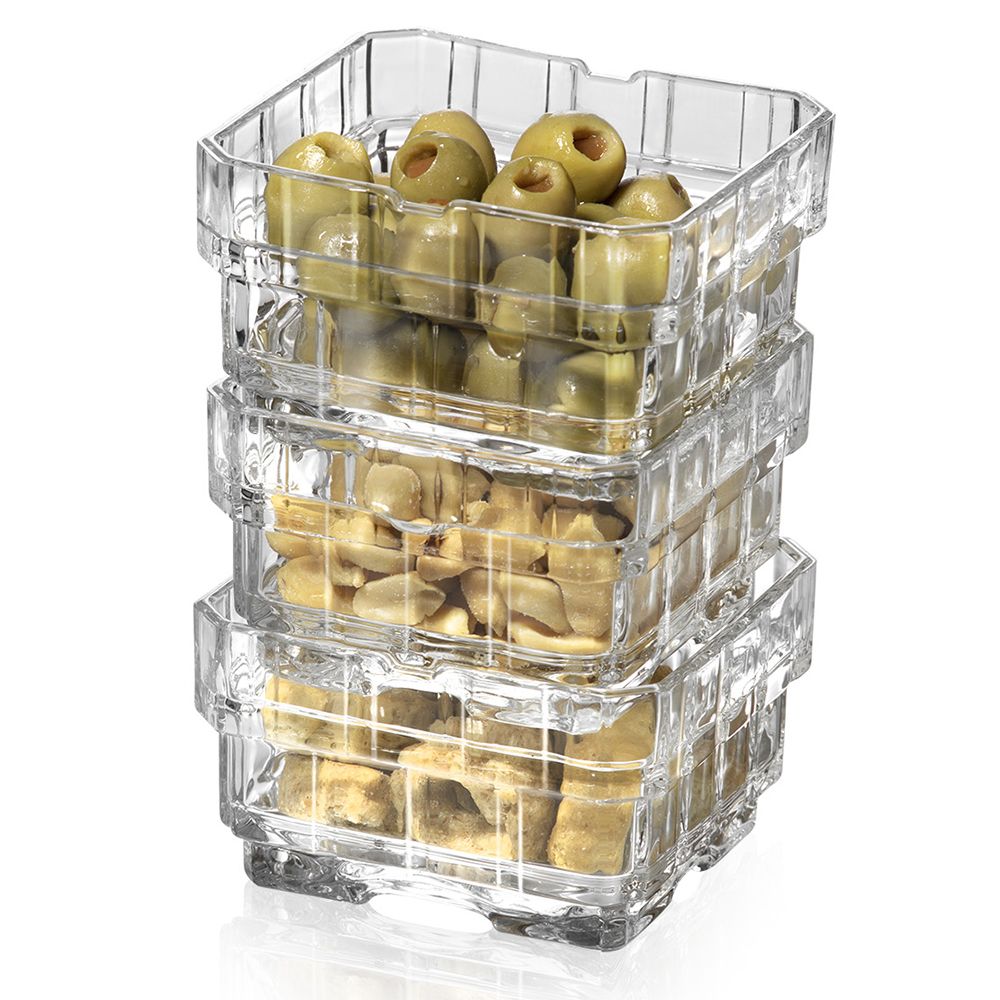 Ideal for multi-level presentation of snacks, desserts, finger foods, sauces... and can be stored in space-saving mode.