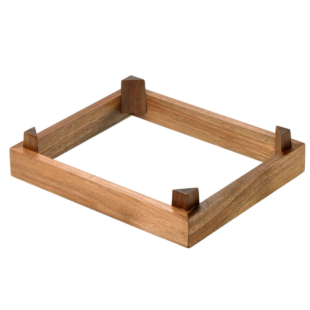 Acacia open stand Double face cm.36x30x7,7h Double face. Match with tray GN 1/2. Modular system to create your buffet and decorate your spaces. It includes 6 Acacia open or closed components matching with black melamine gastronorm trays with whom you can create and personalise your buffet in the measure & sizes according to your wishes.