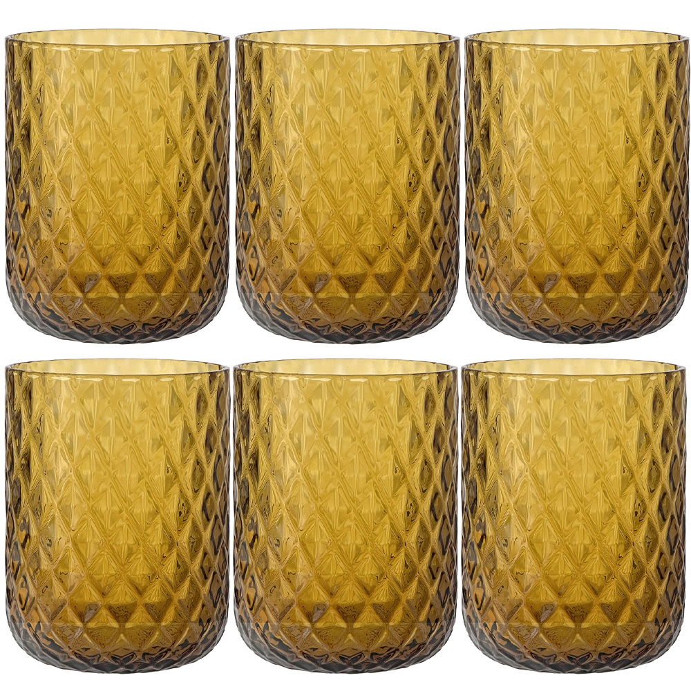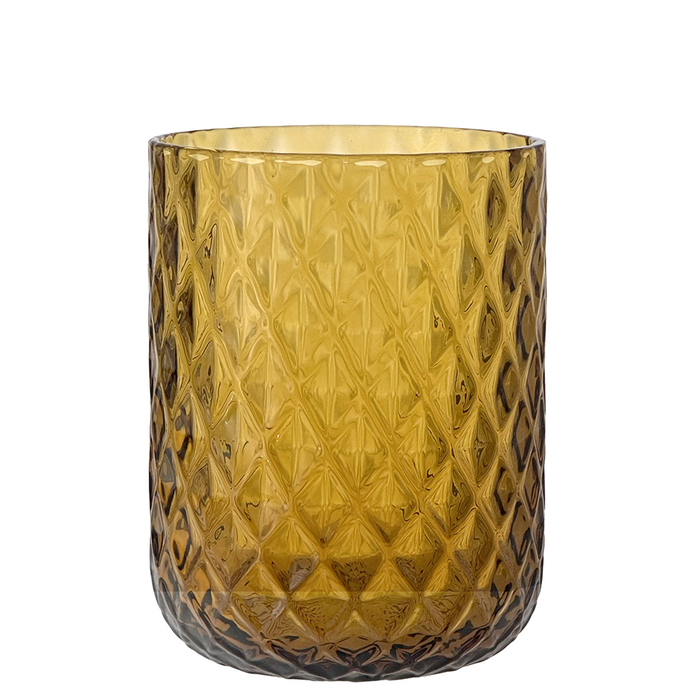 Made of hand-blown glass, these tumblers combine the artisanal delicacy of the material with a textured surface that captures and reflects the light, creating a luminous and refined effect.