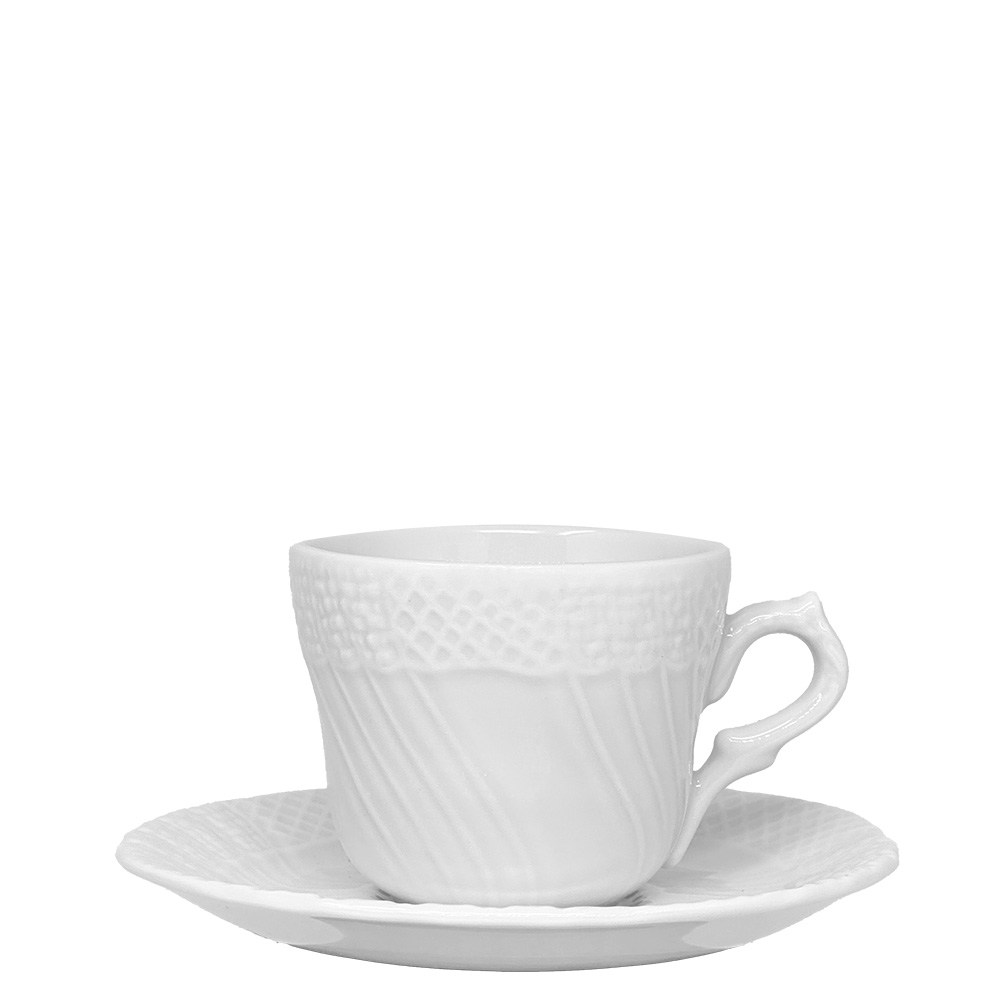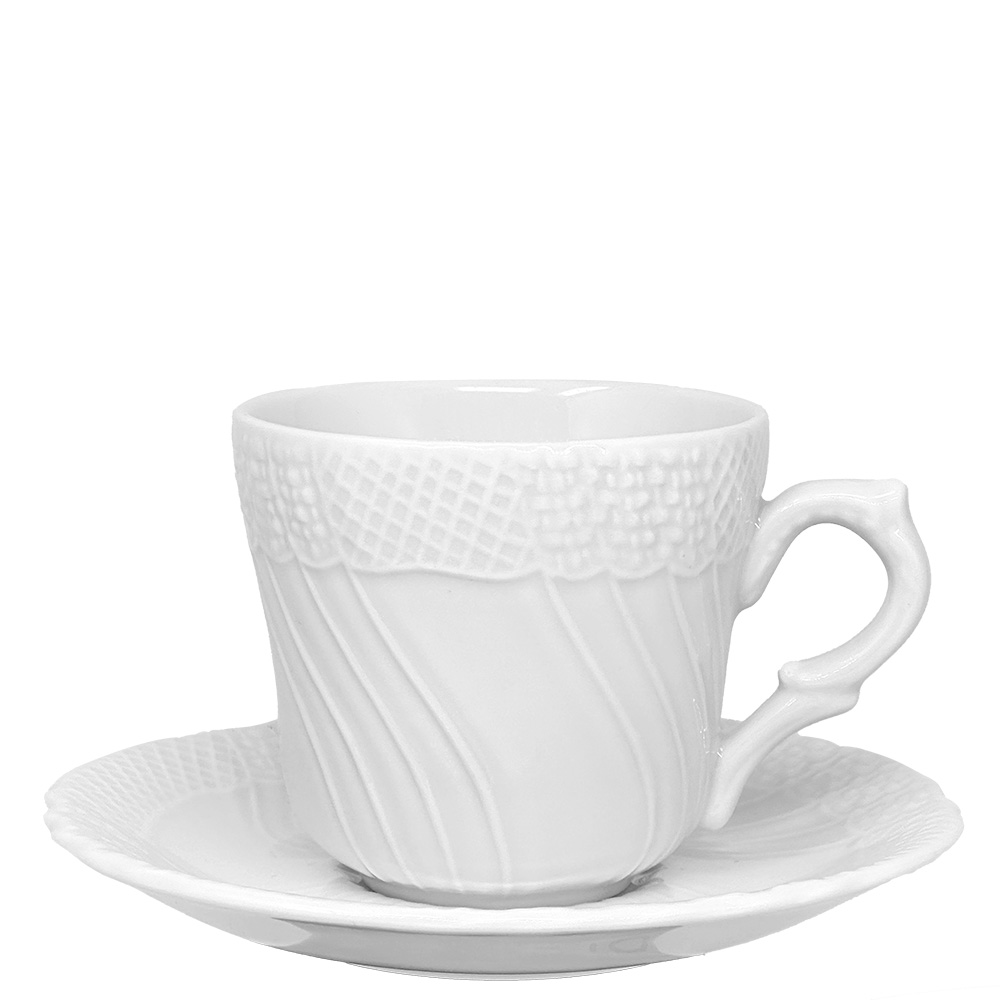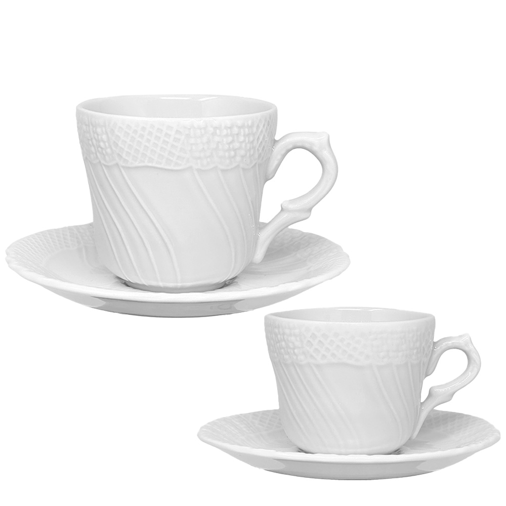 Cups from the Antica Florentia collection in refined white porcelain, featuring elegant embossed details inspired by classical design.