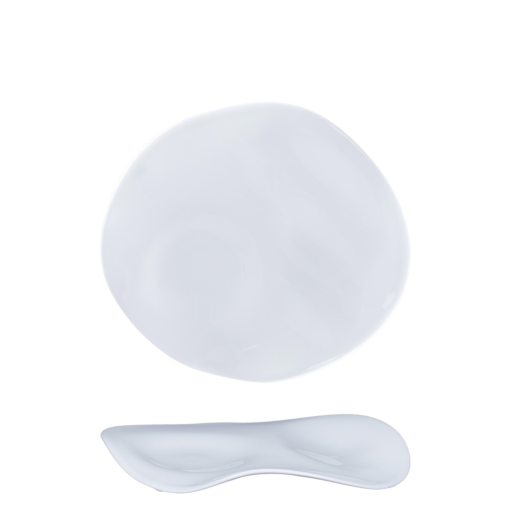 Asymmetric Feelings plate in bone china, with 2 compartments.