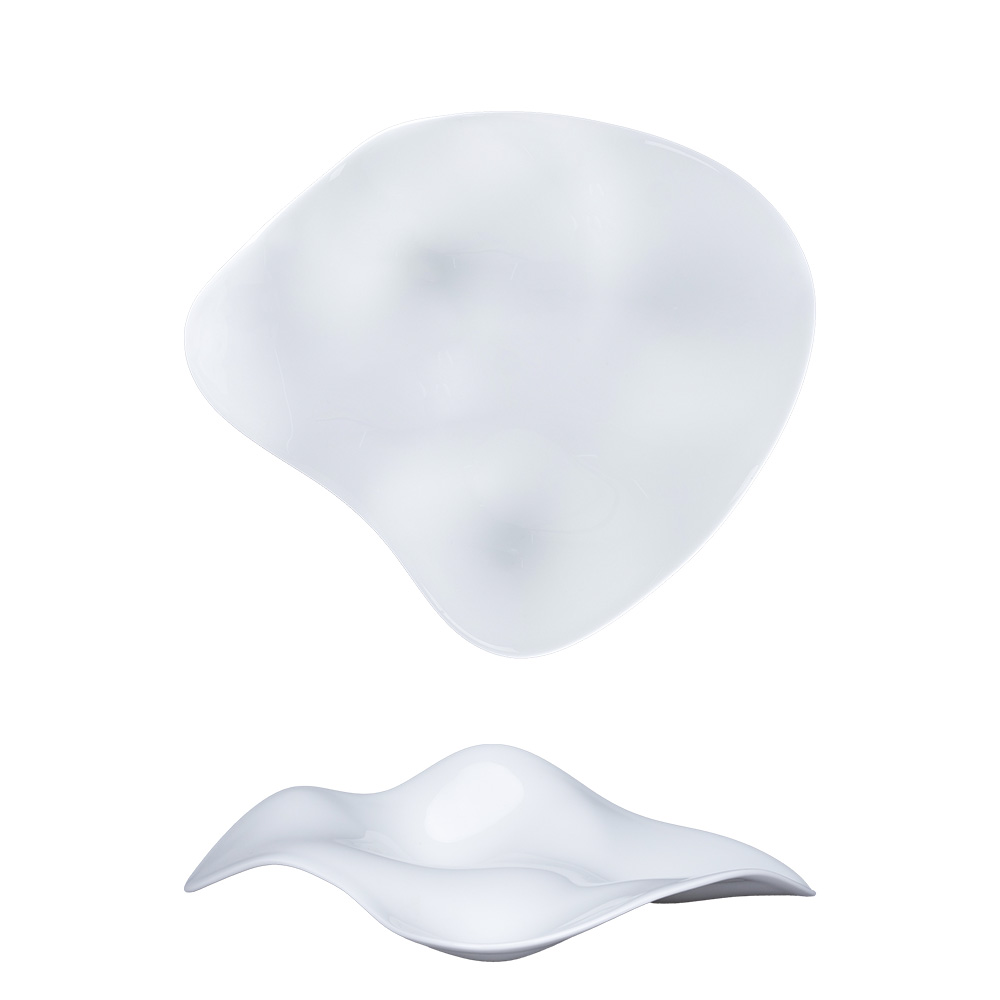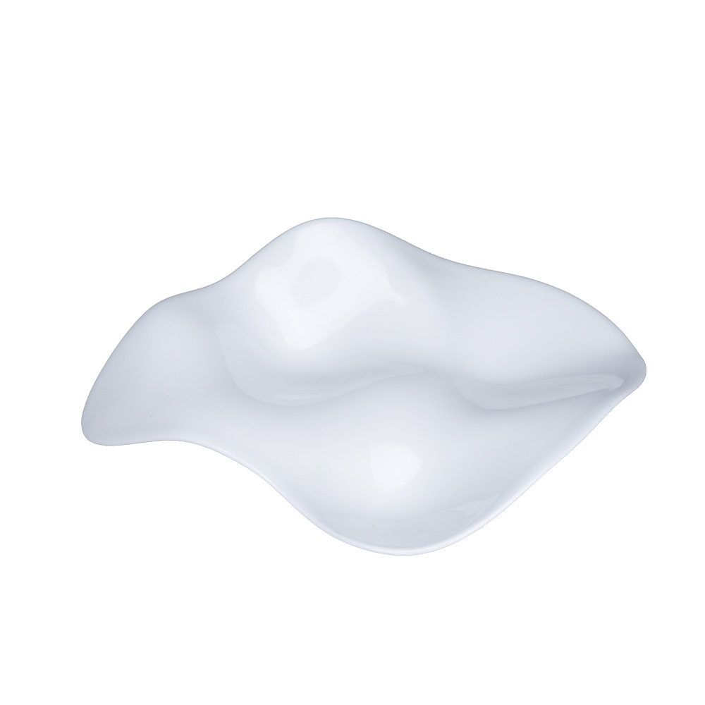 Asymmetric Feelings plate in bone china, with 3 compartments.