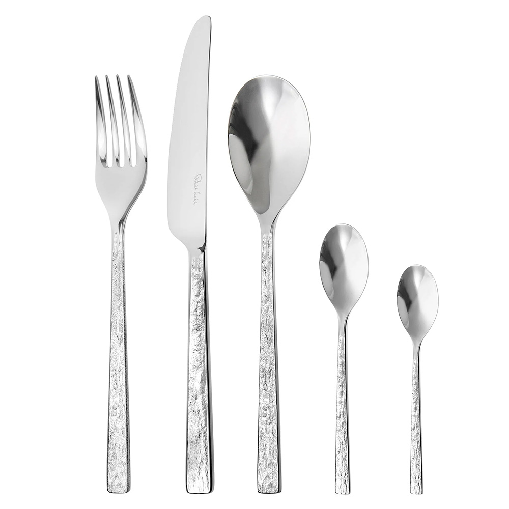 Blockley cutlery features a tactile, stone-like texture running along the entire length of each handle, both front and back.