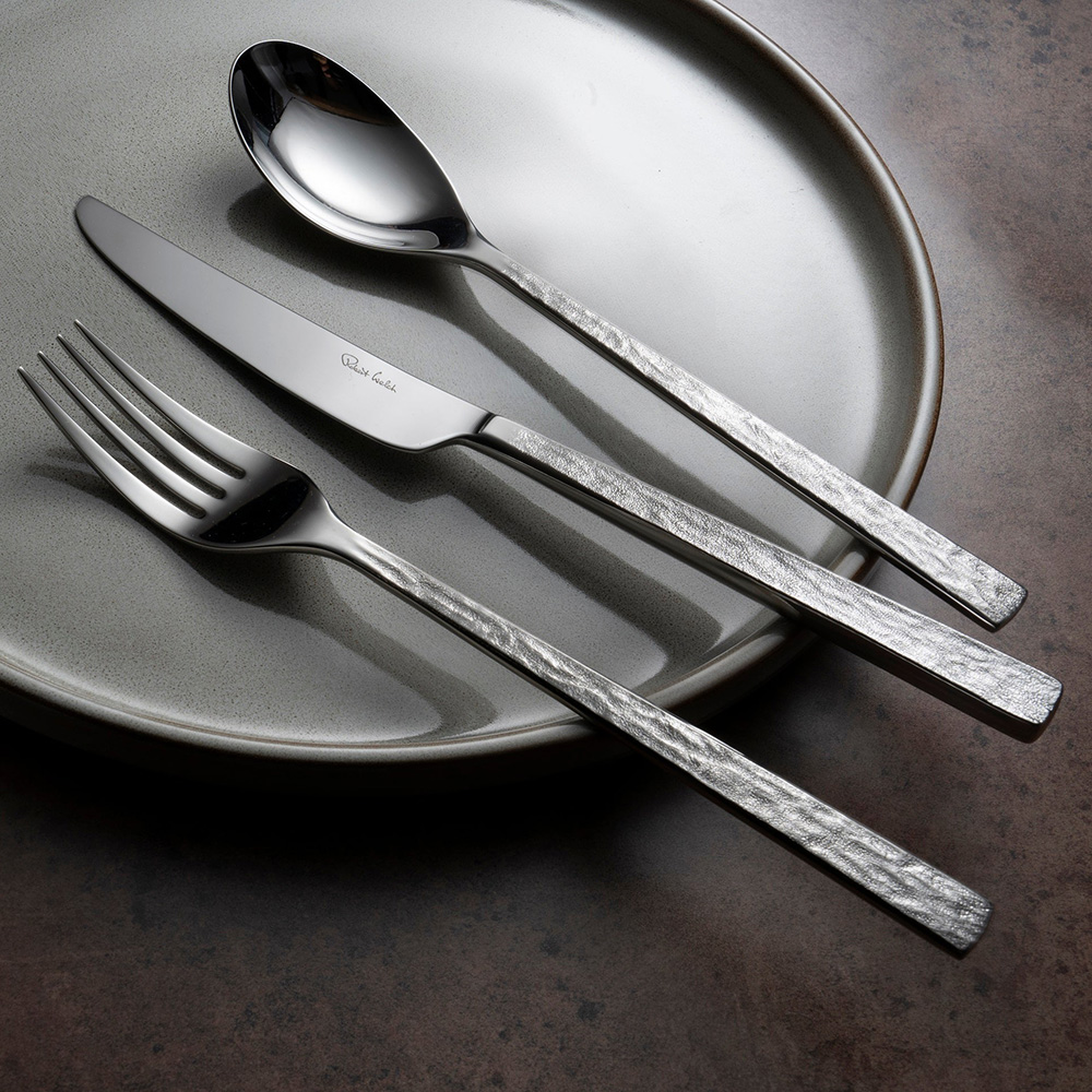 Blockley cutlery features a tactile, stone-like texture running along the entire length of each handle, both front and back.