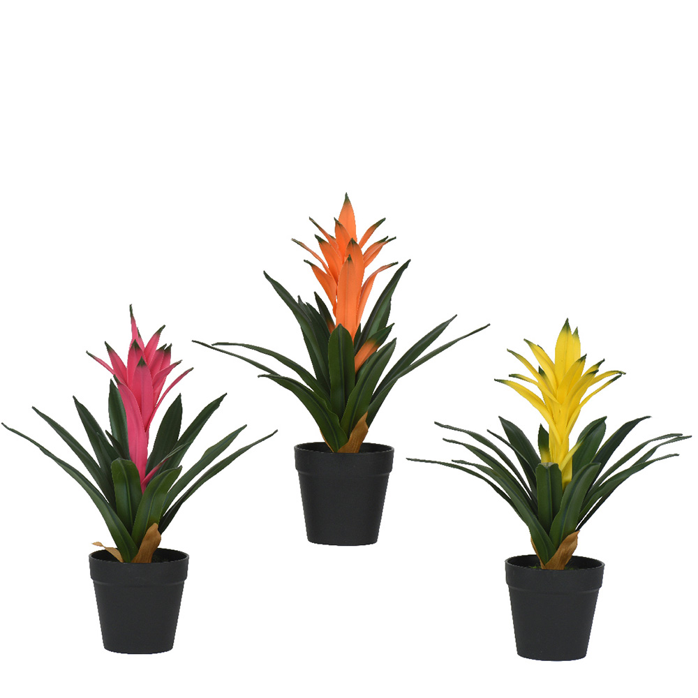 Bromeliad plant in pot, made of polyester and PVC, 3 assorted colors dim. 11 cm × 32 cm height