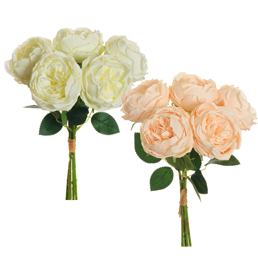 Bundle of 5 artificial peonies with leaves, made of polyester and PVC Height: 38 cm Available in cream and salmon