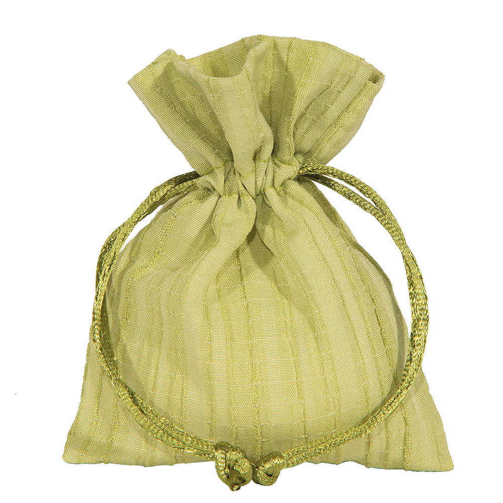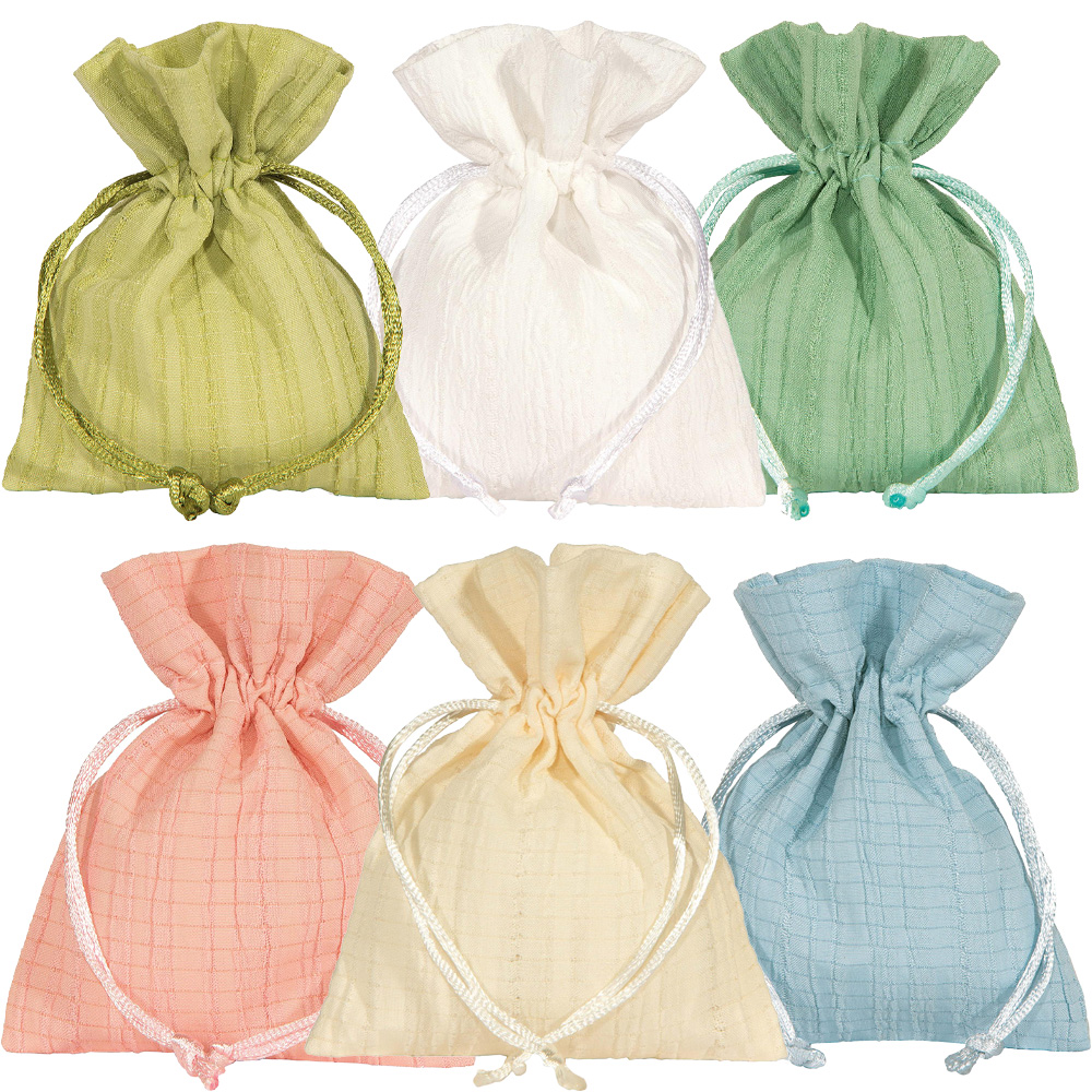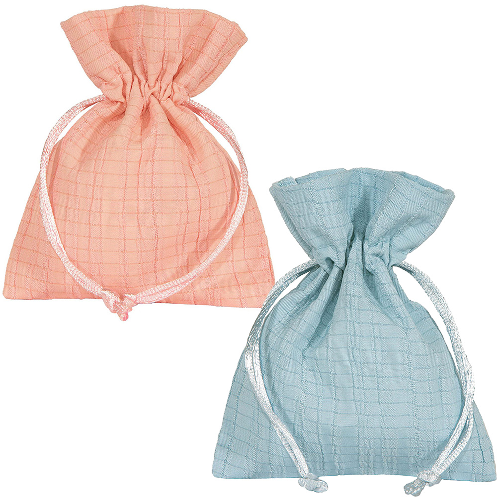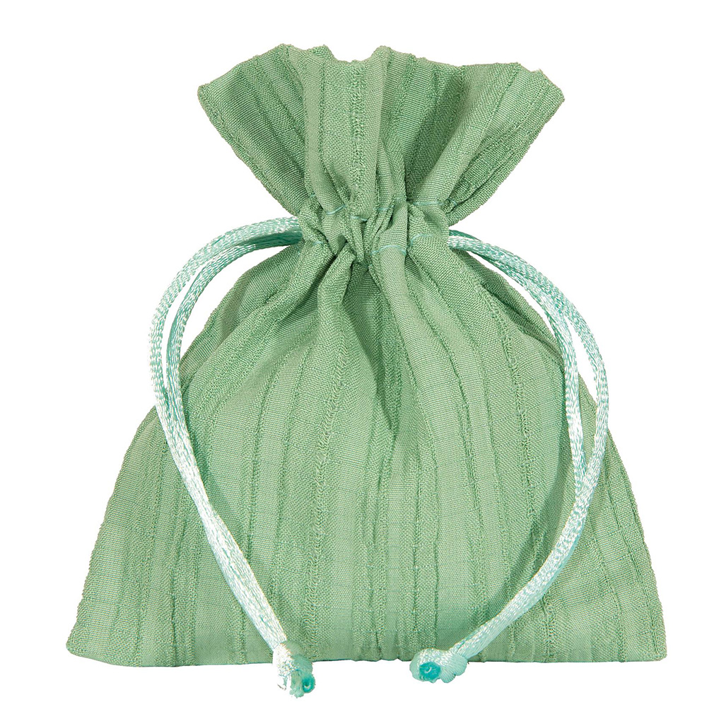Crêpe-Effect Polyester Fabric Pouch, with drawstring closure Size: cm 9 × 12 h Sold in packs of 10 pcs