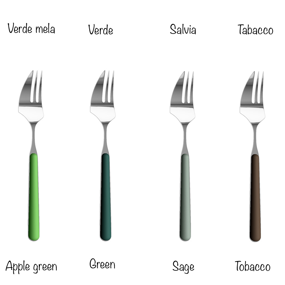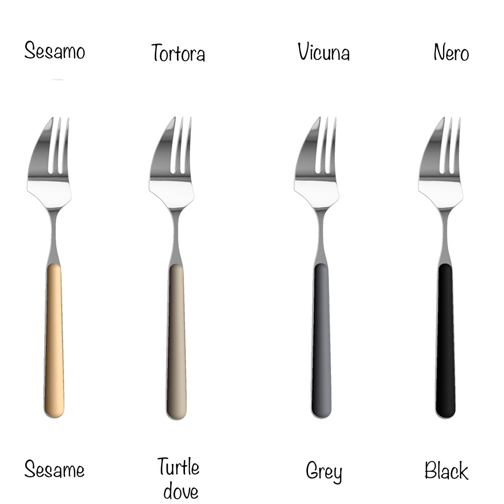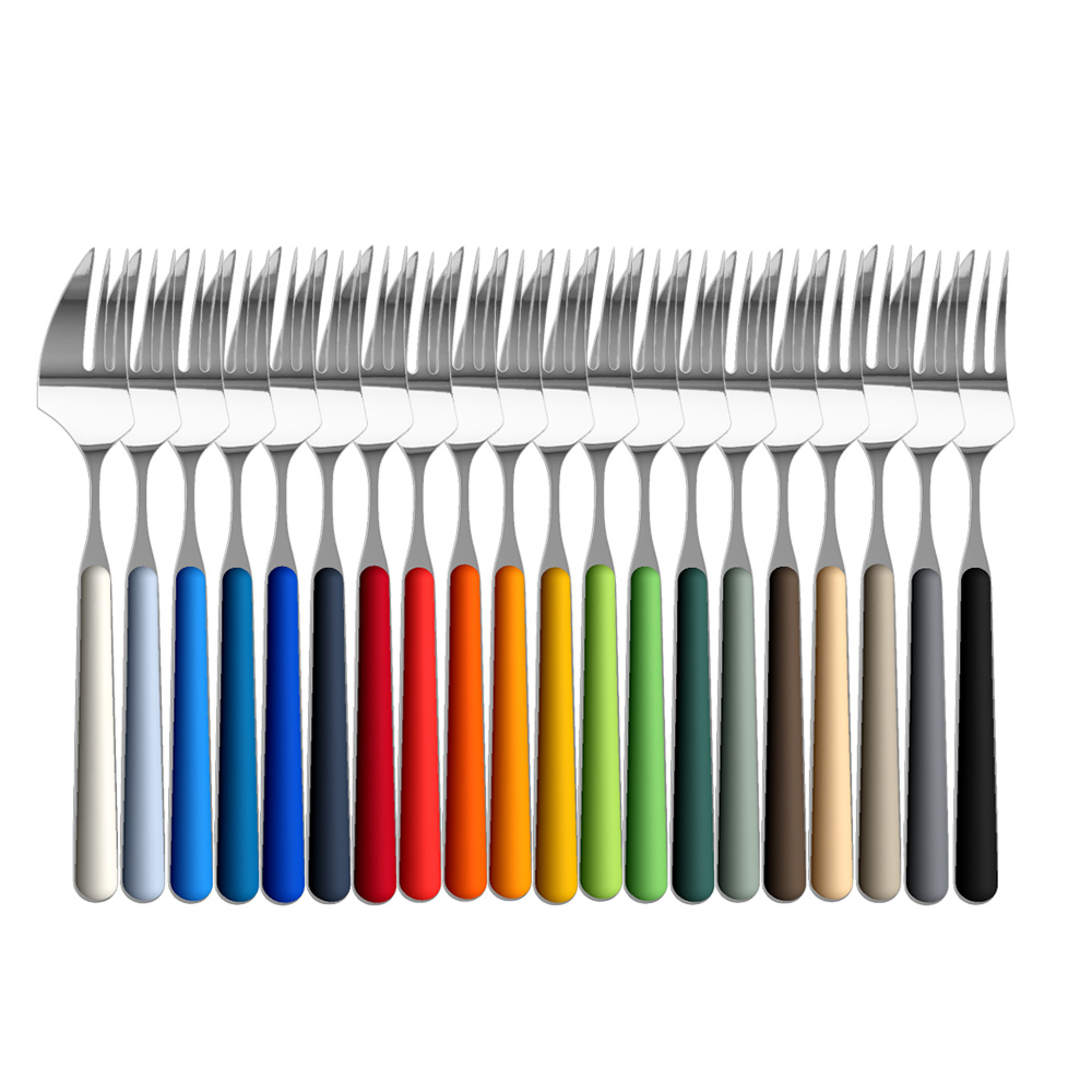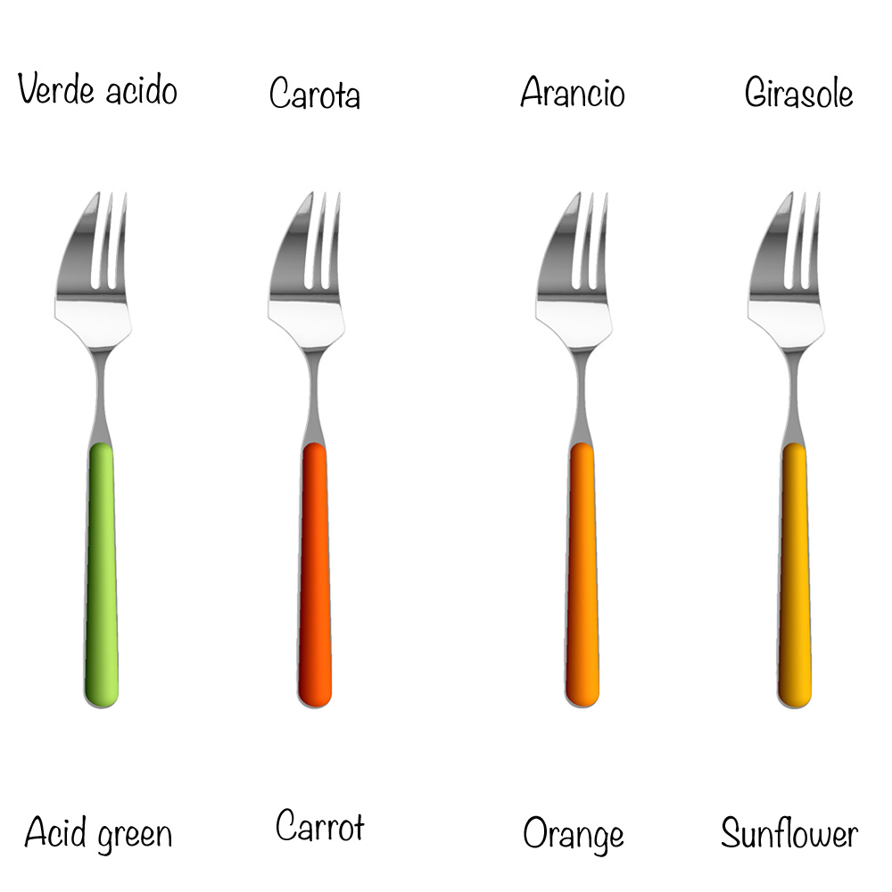 Made of 18/10 stainless steel, this cutlery stands out for its highly resistant colored handles, designed to maintain brightness and performance over time.