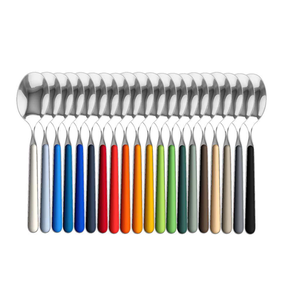 Made of 18/10 stainless steel, this cutlery stands out for its highly resistant colored handles, designed to maintain brightness and performance over time.