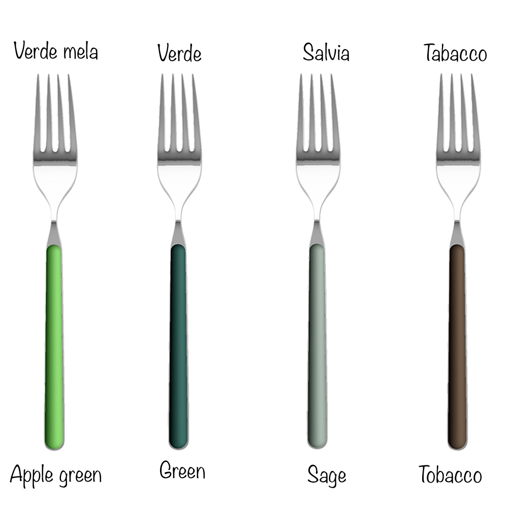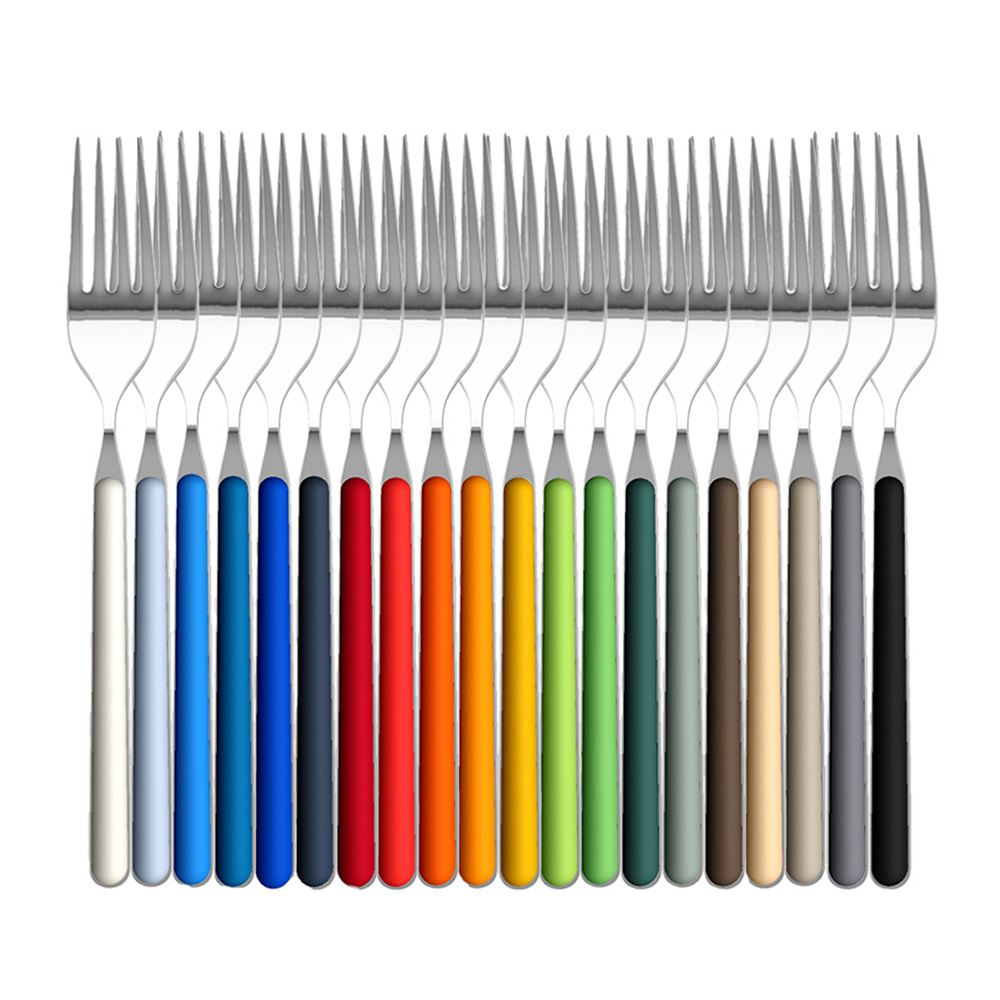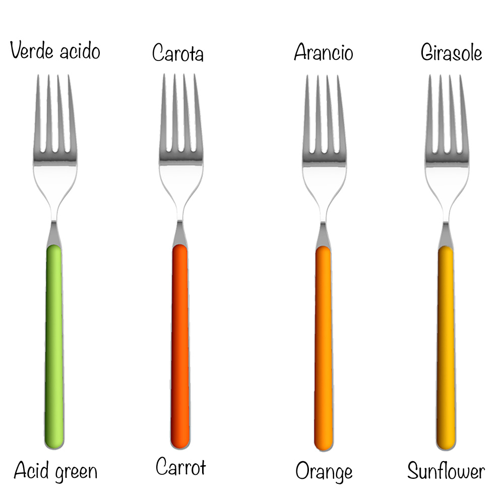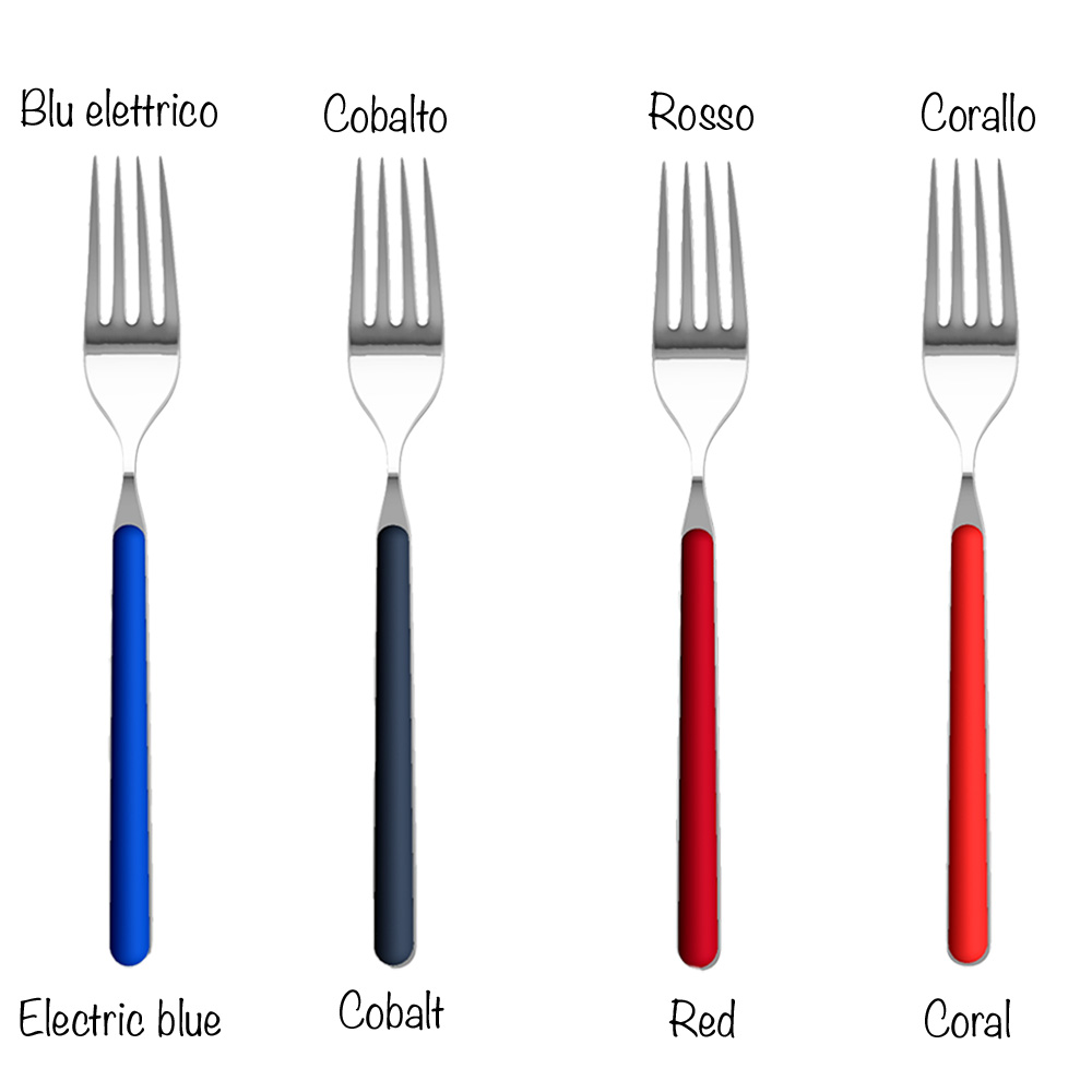 Made of 18/10 stainless steel, this cutlery stands out for its highly resistant colored handles, designed to maintain brightness and performance over time.