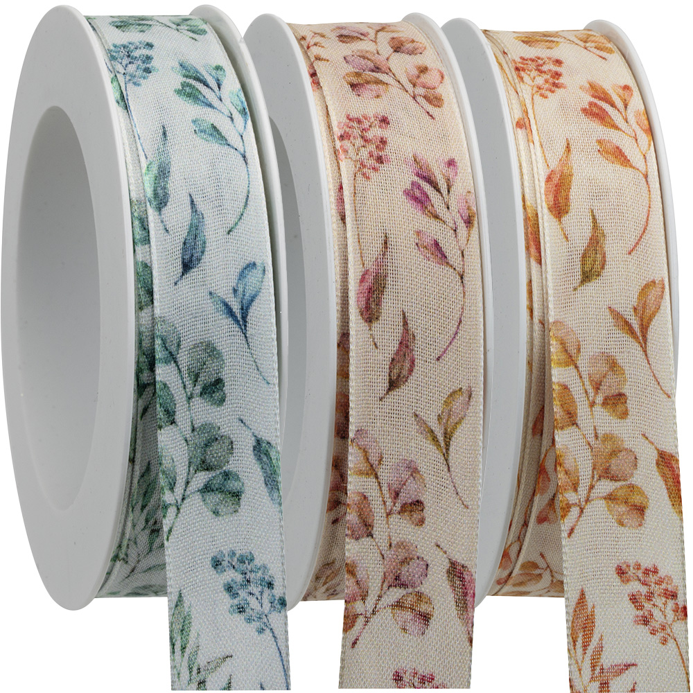 Foliage ribbon in printed polyester fabric dim. 25 mm x 20 m