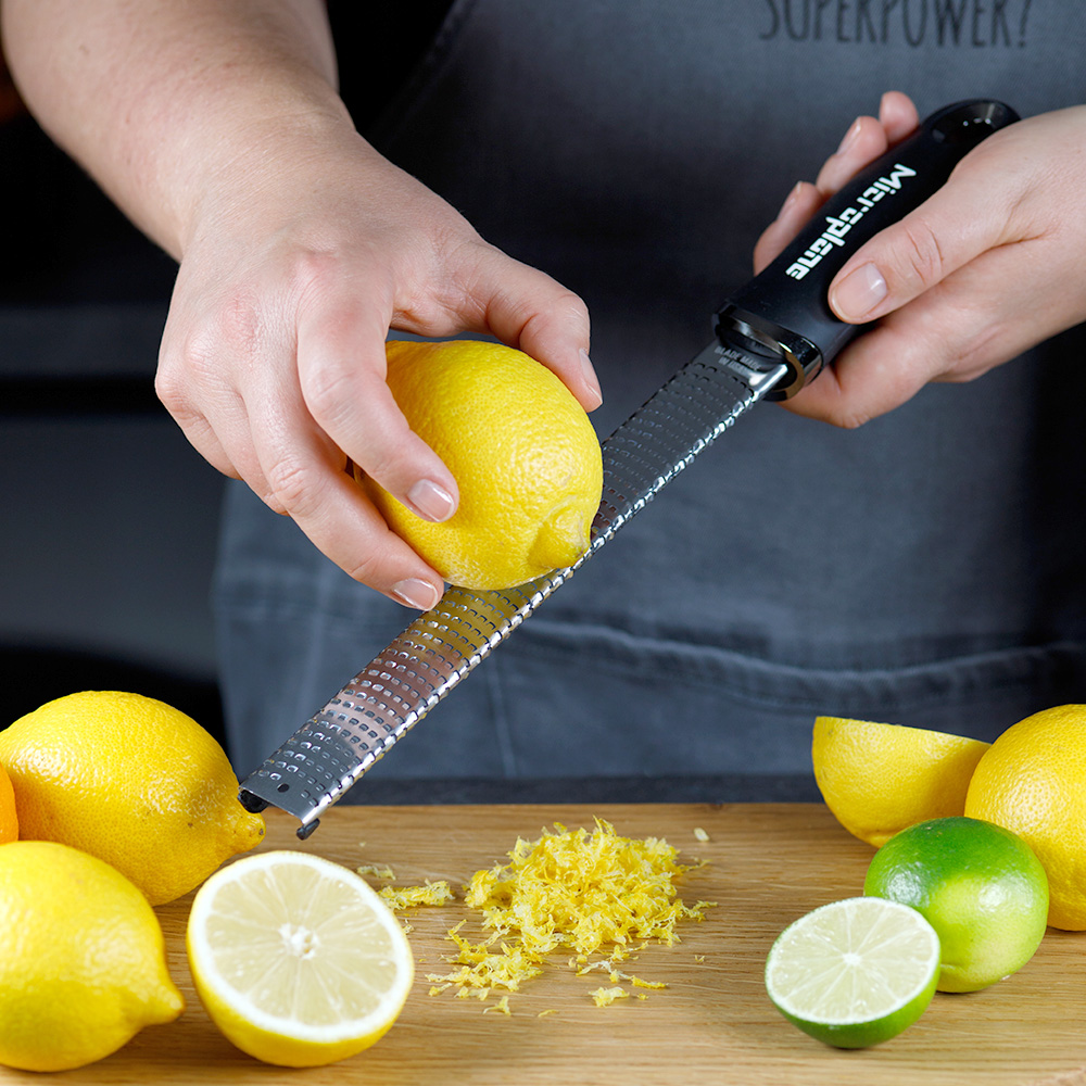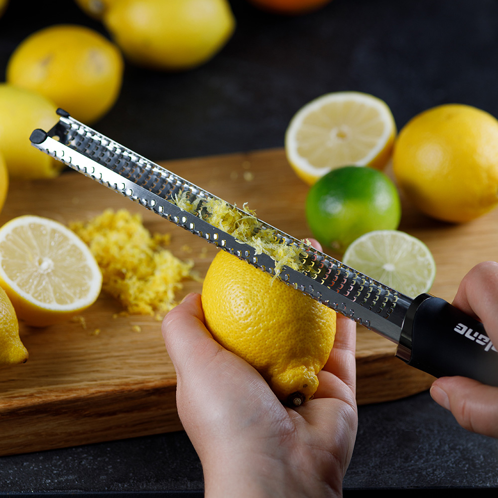 It allows you to finely grate any type of food, until you get very thin curls. Use the finely grated lemon zest for a fresh vinaigrette, for special sauces or even for homemade dishes.