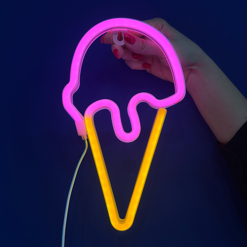Ice Cream Cone LED Neon Sign, fixed USB powered dim. 15.5 cm × 26.5 cm height