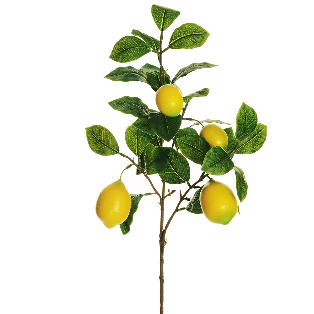 Lemon branch in polyester and PVC, with leaves and 4 fruits Dimensions: 86 cm height