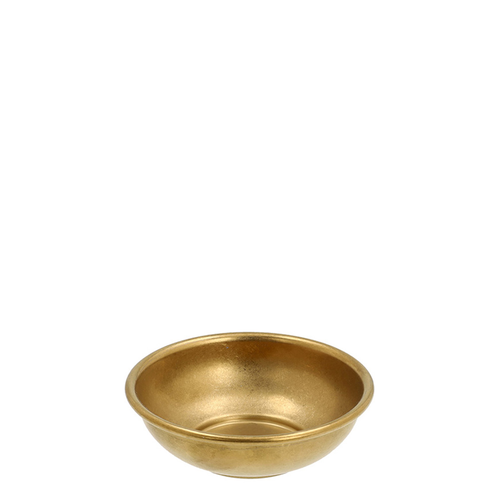 Round stainless steel bowl in an antique gold finish, featuring a refined vintage effect.