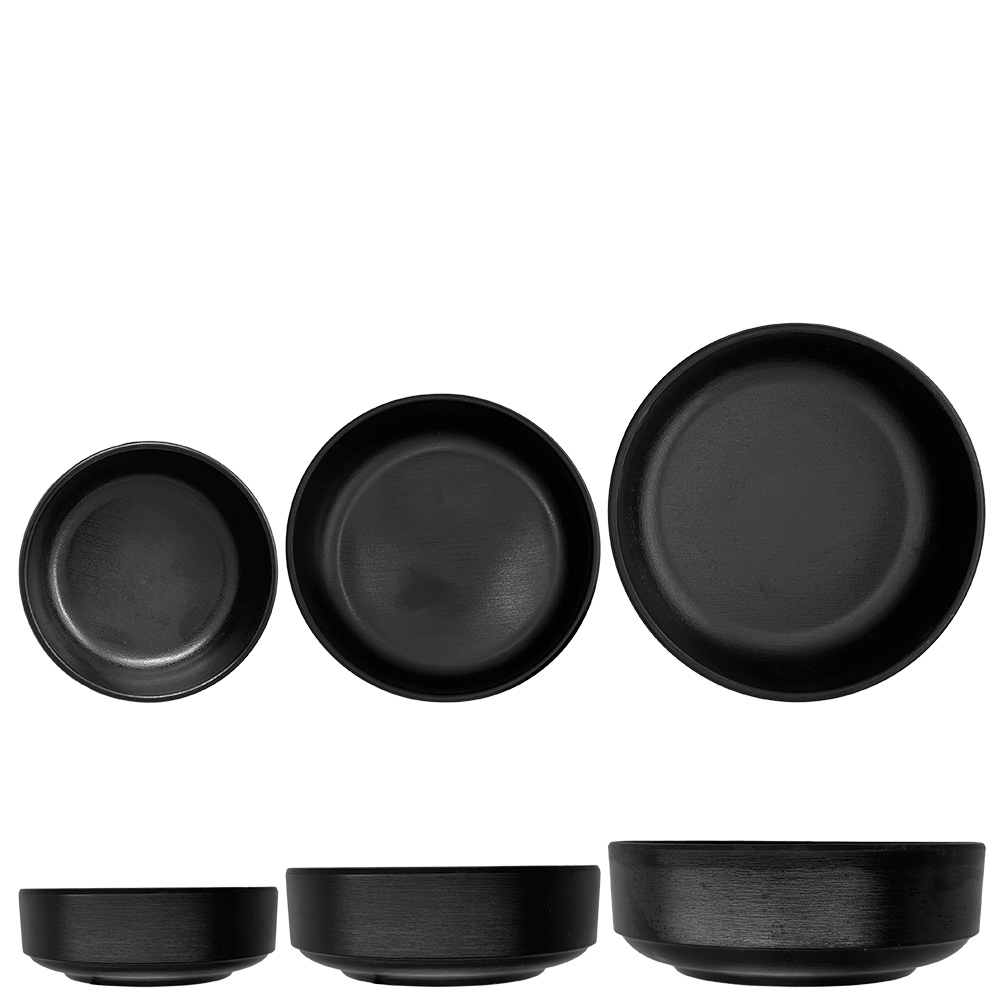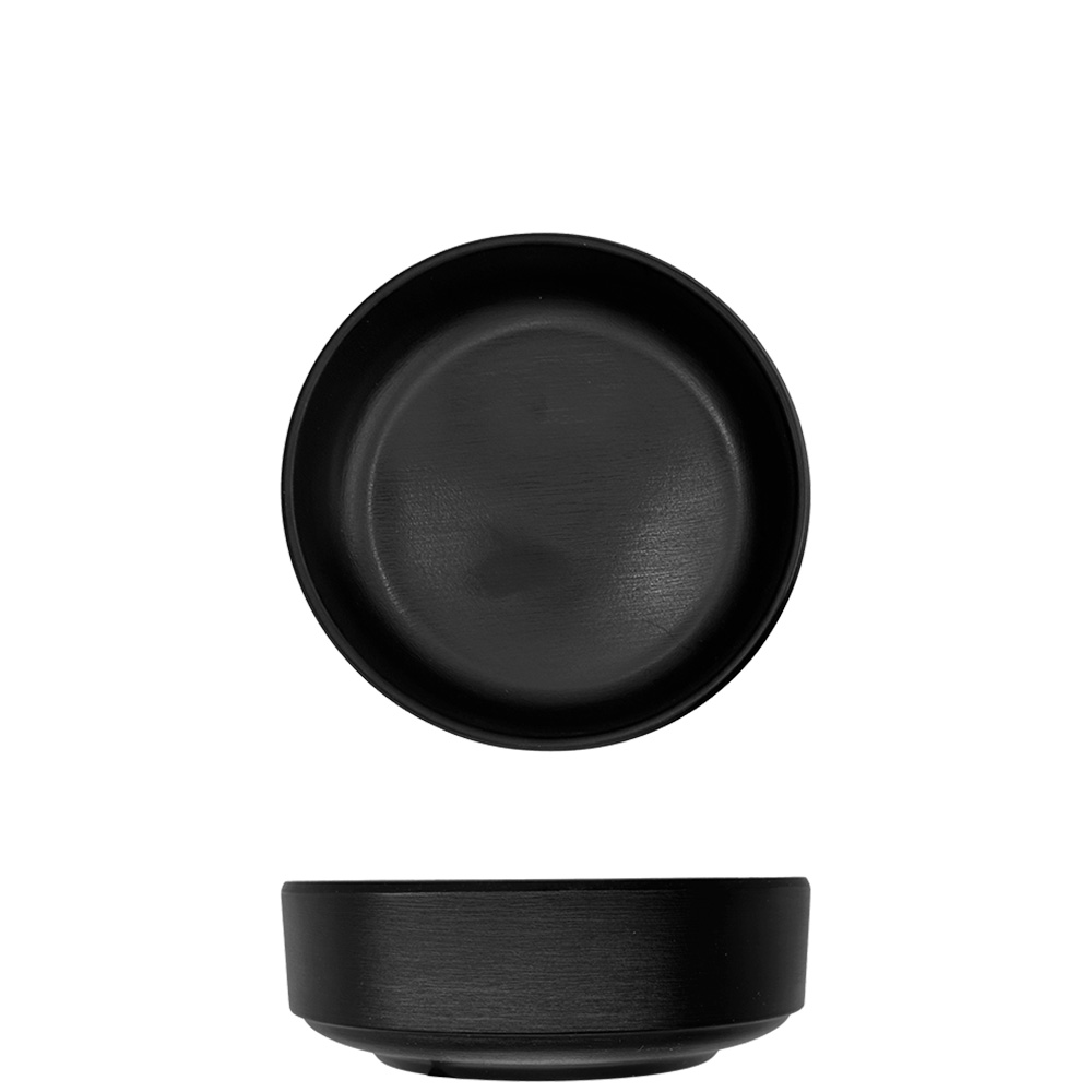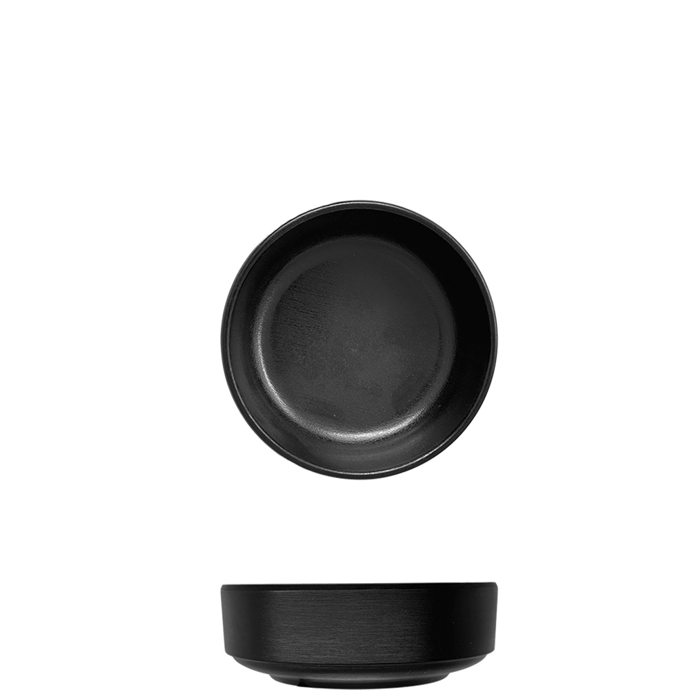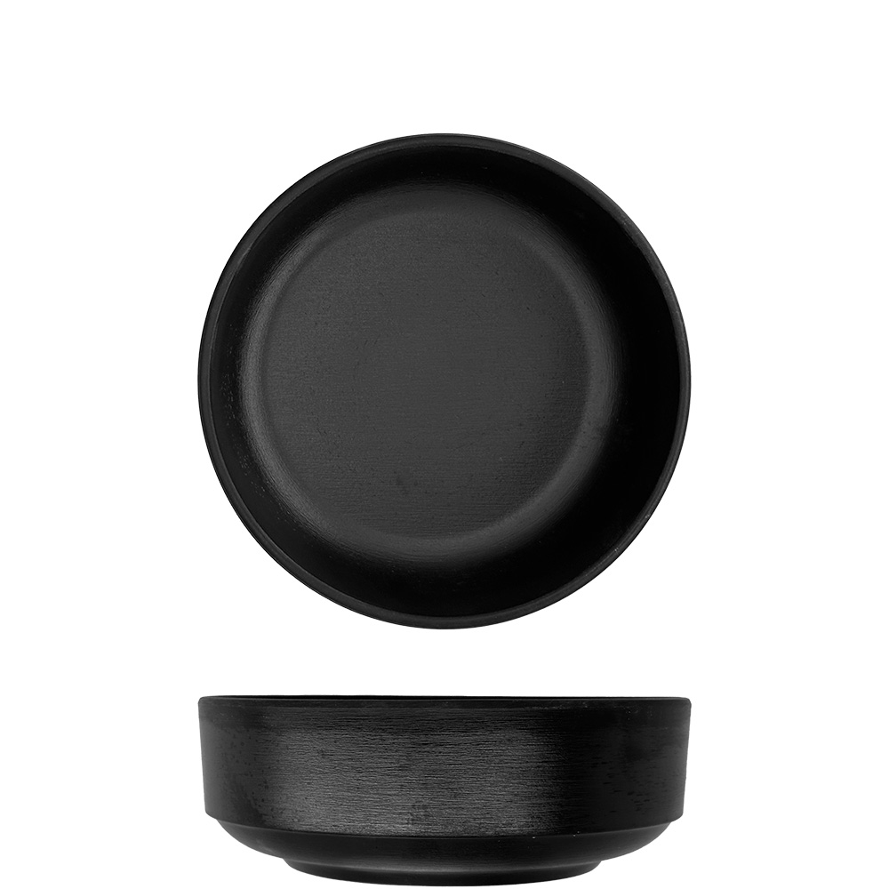 Low stackable cup in matte black melamine,