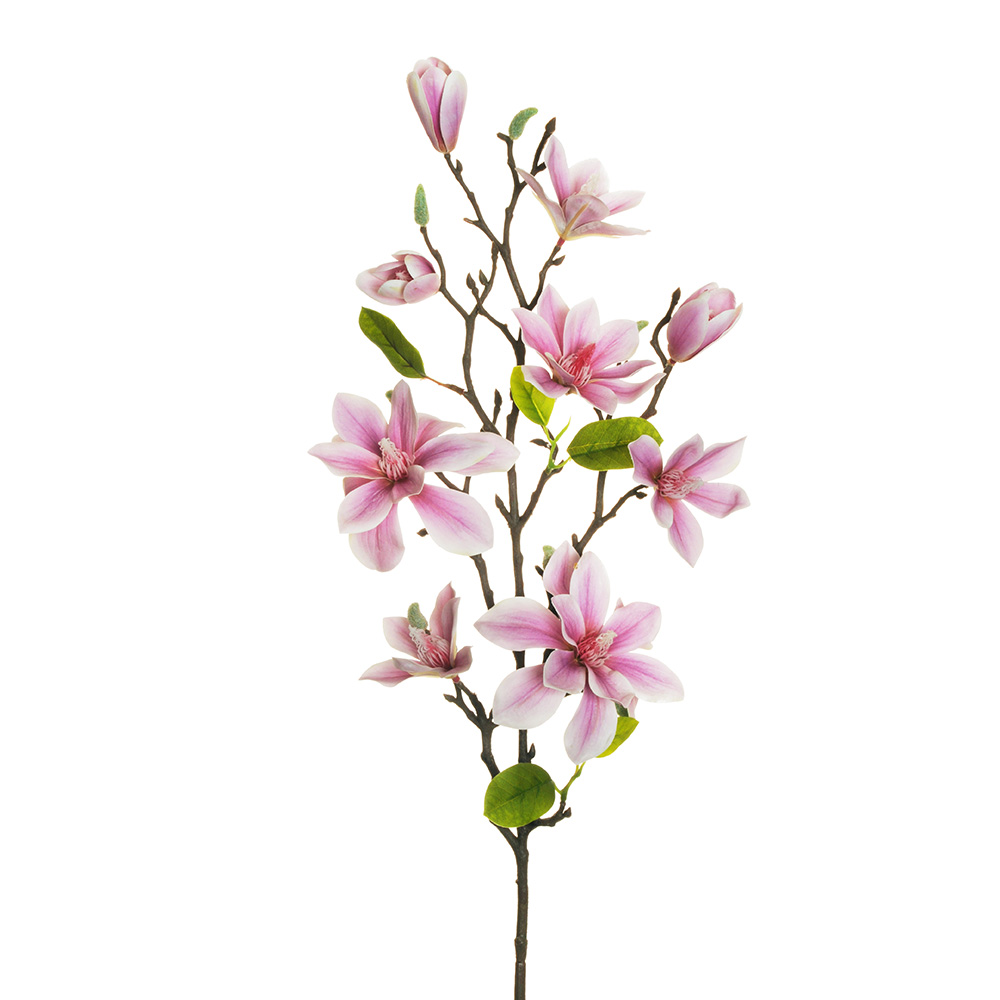 Magnolia branch in polyester and PVC with 6 flowers and 3 buds Dimensions: 82 cm height