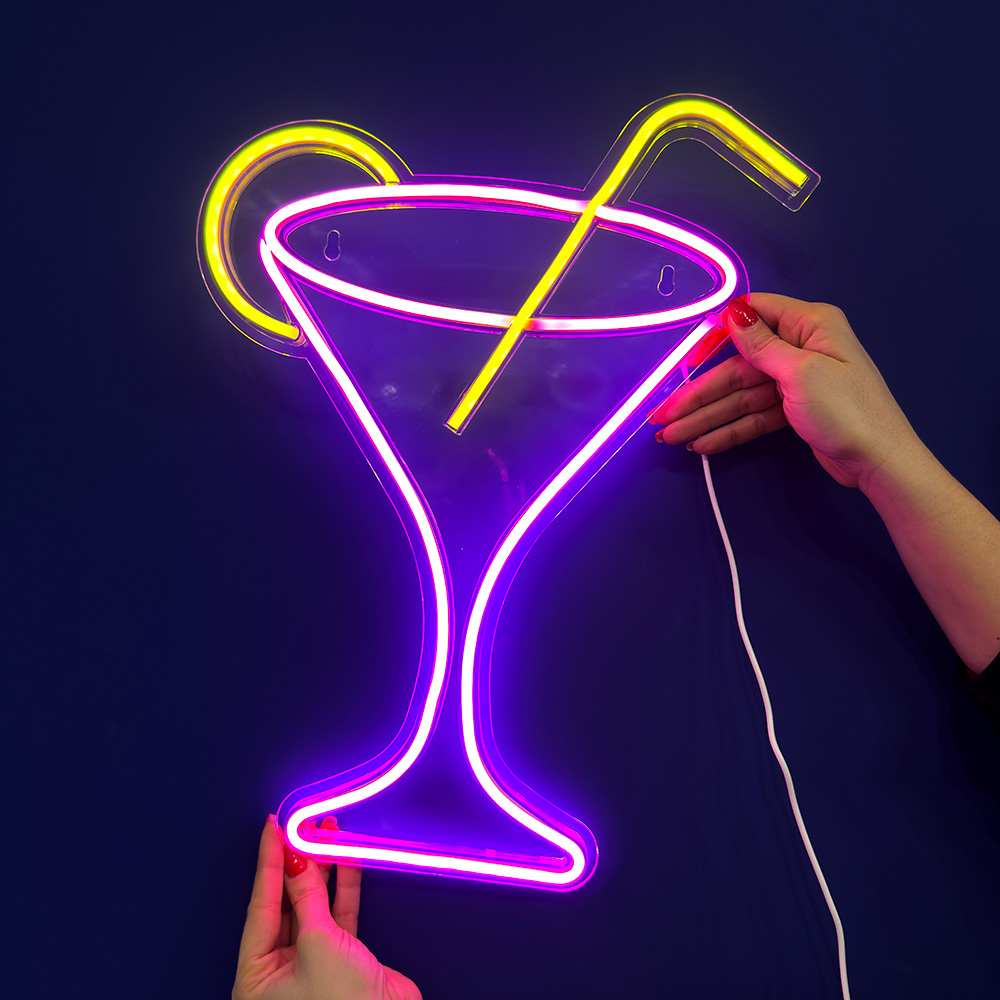 Fixed LED neon sign in martini glass shape, for indoor use USB powered dim. 32 cm × 43 cm height