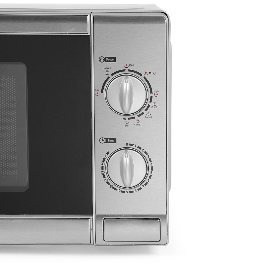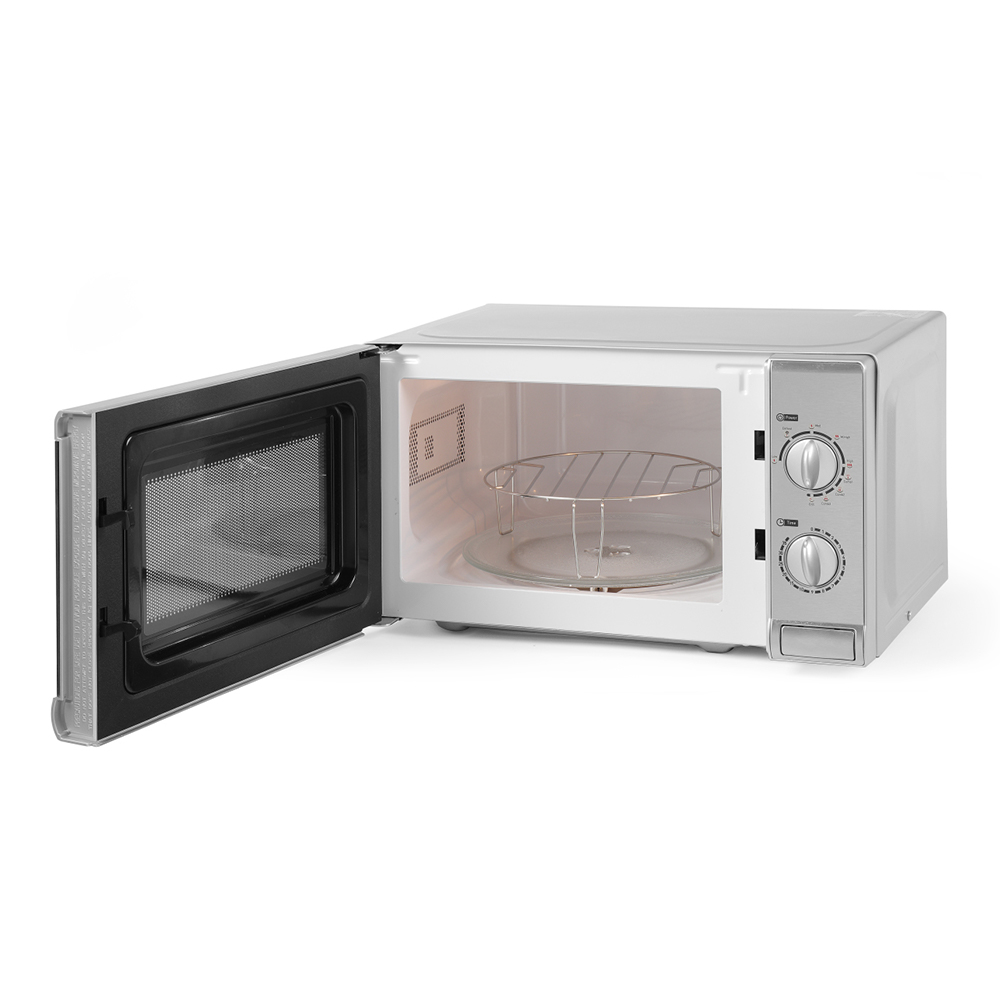 Microwave oven with grill function, designed to quickly heat, defrost and grill food.