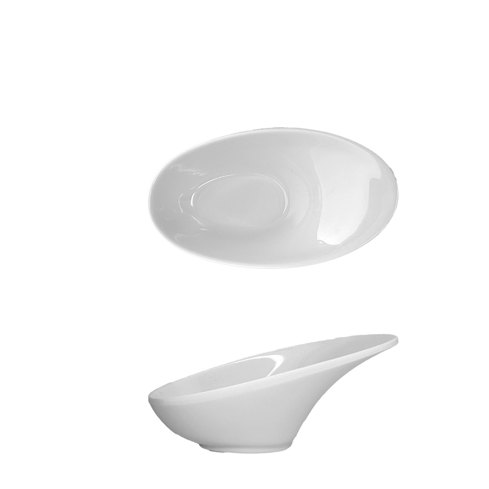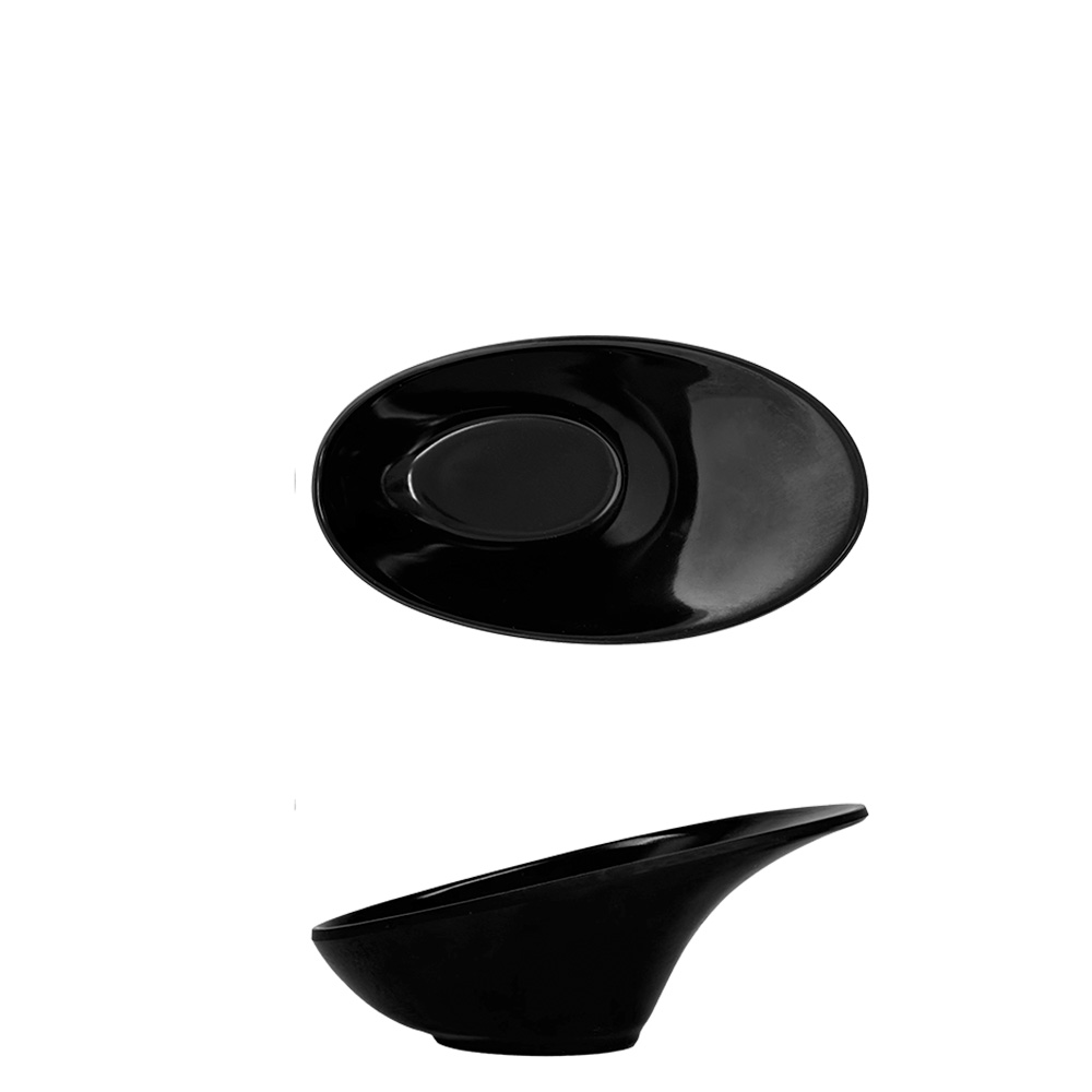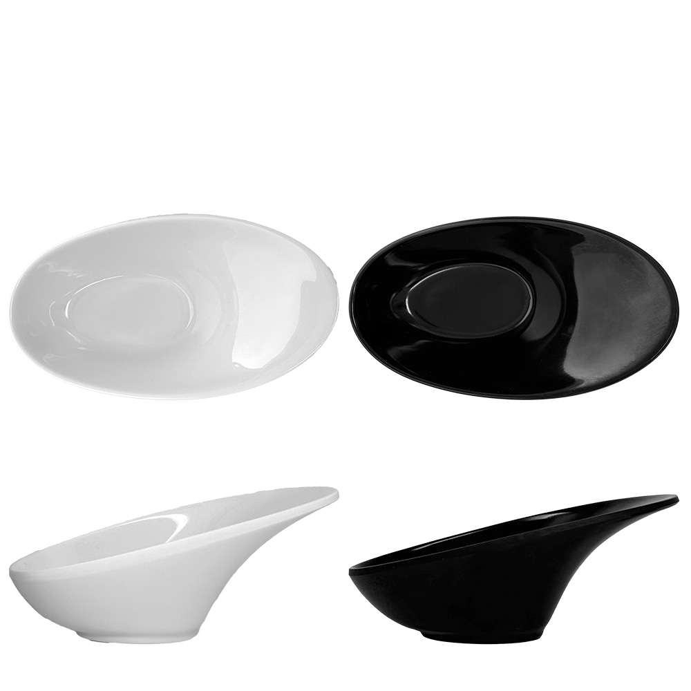 Available in white and black, this oblique melamine bowl stands out for its modern and functional design.
