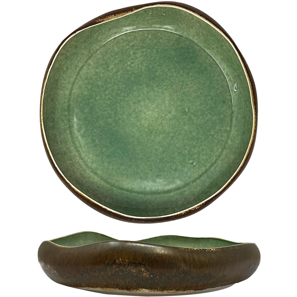 Shades of green, accented by an elegant brown border, evoke the freshness of nature and add a touch of sophistication to any table.