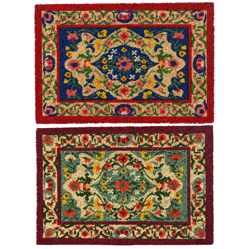 Oriental-style coir doormat, rubber backing two assorted designs size: 40x60 cm h
