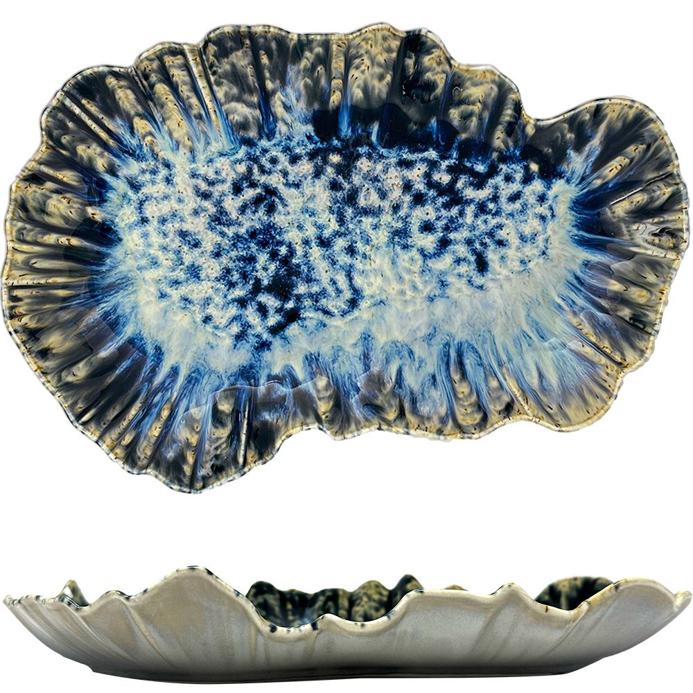 Each plate is a unique masterpiece, hand-decorated in shades of deep blue and with jagged and shaded edges that evoke the island's iconic stacks.