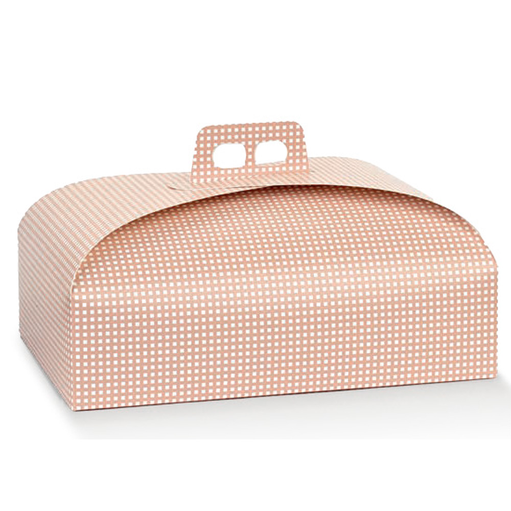 Peach Vichy Colomba Box, made of printed cardboard, with top handle