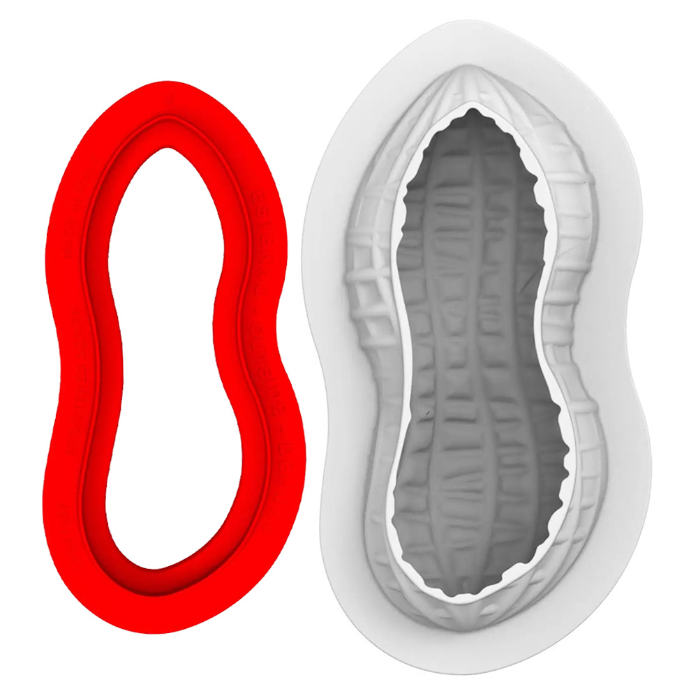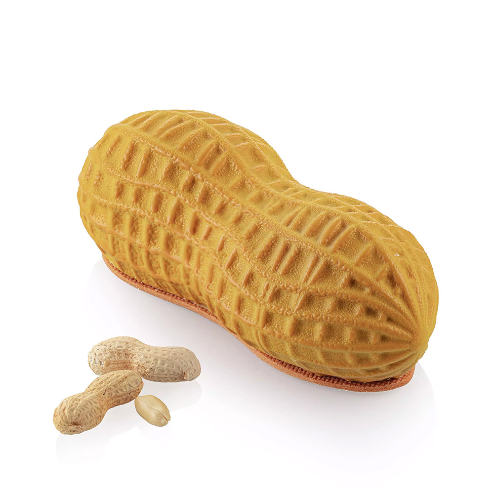 The kit includes a platinum silicone mold to create peanut-shaped cakes and an ABS cutter for shortcrust bases and custom inserts.