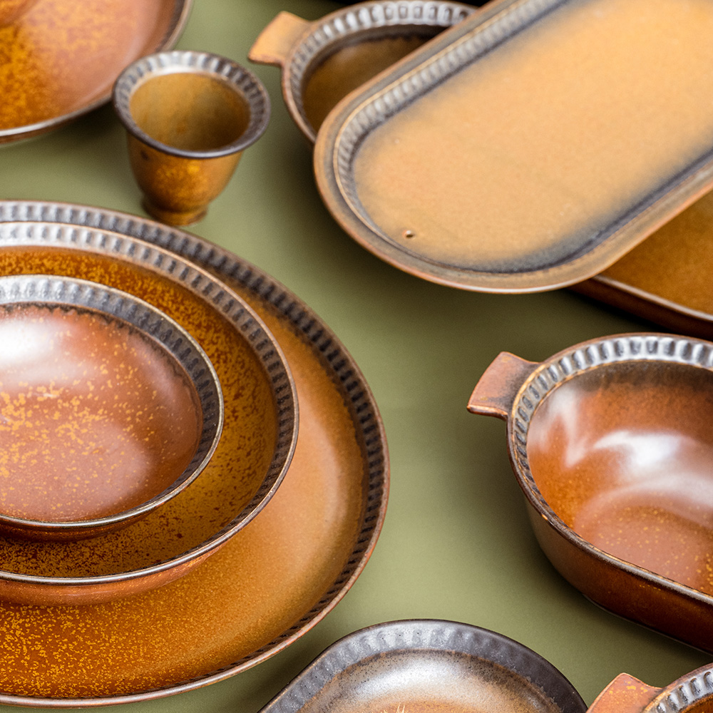 Bowl, made of porcelain coloured with warm colours and different shades of brown, from the Pompei line by Landhaus.