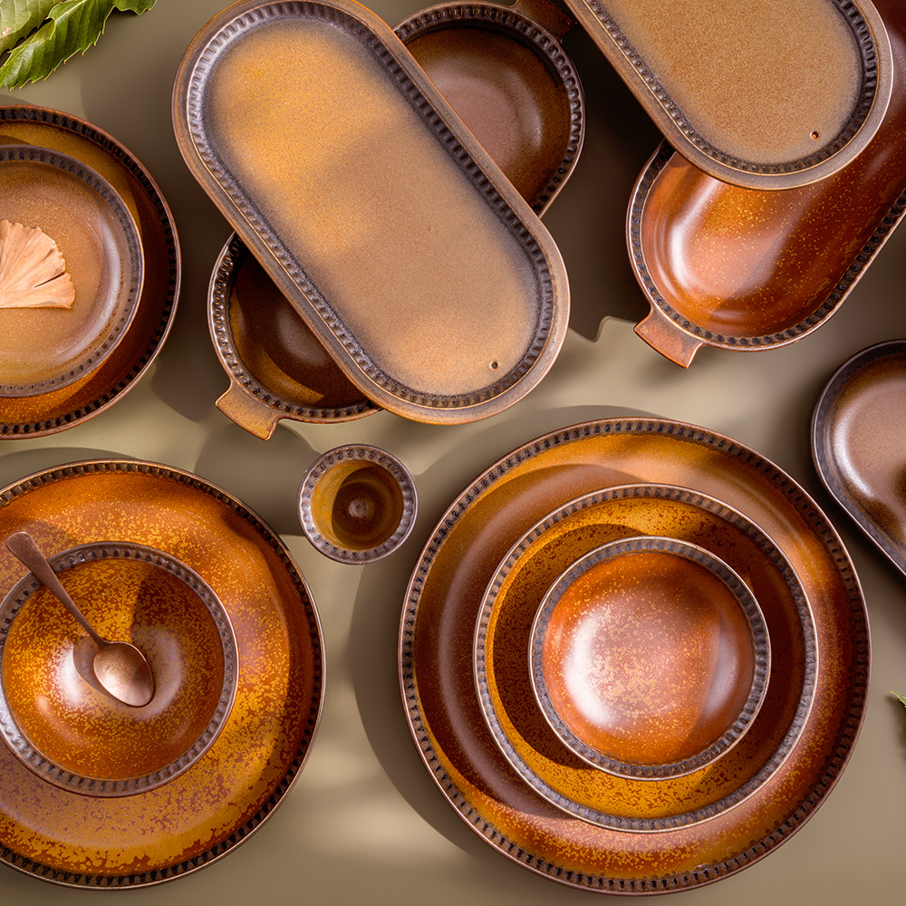 Small bowl, made of porcelain coloured with warm colours and different shades of brown, from the Pompei line by Landhaus. Dimensions: cm 14x6,5 - Cl 40