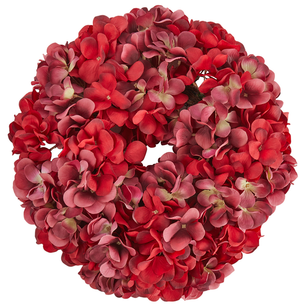 Red Hydrangea Door Wreath, made of PVC and polyester