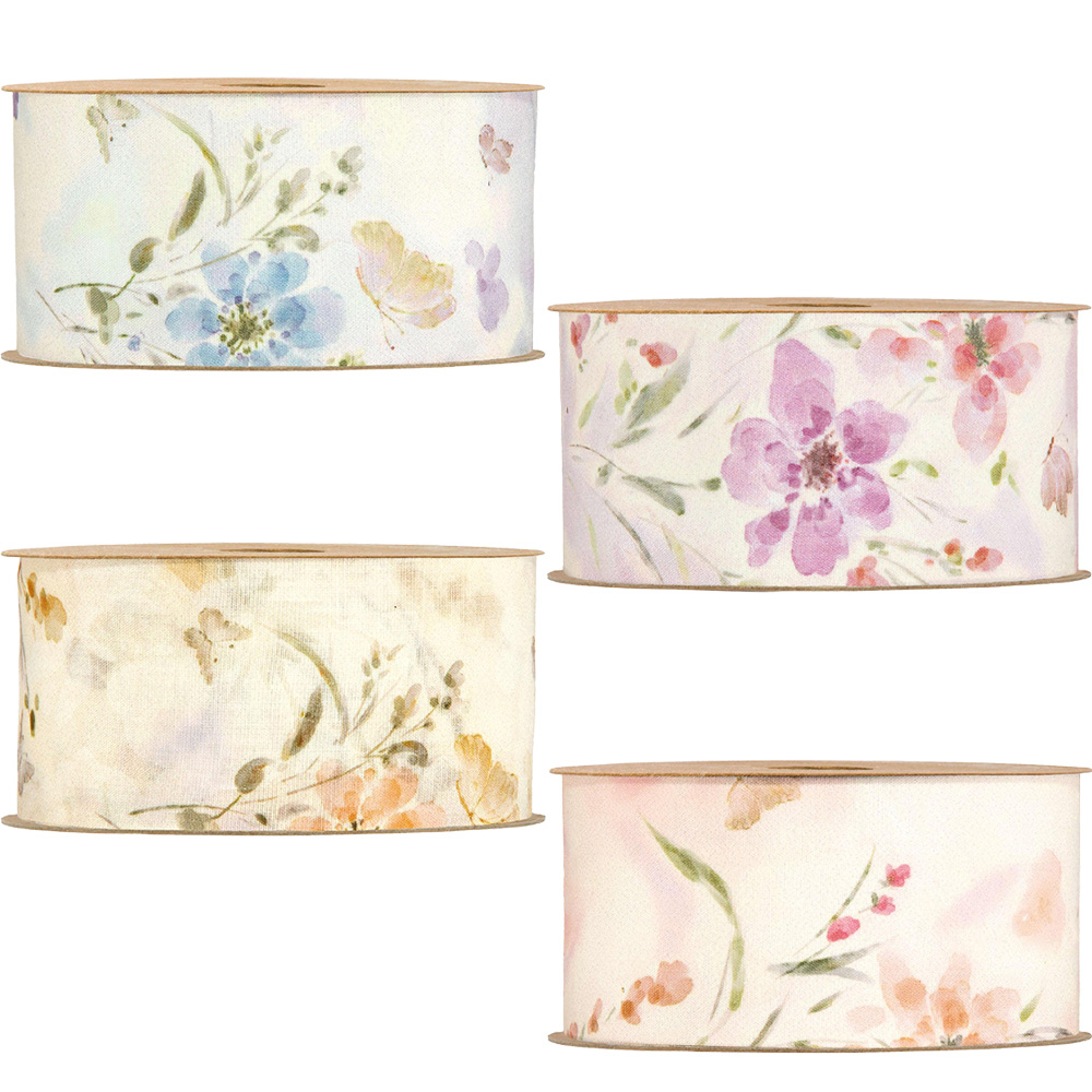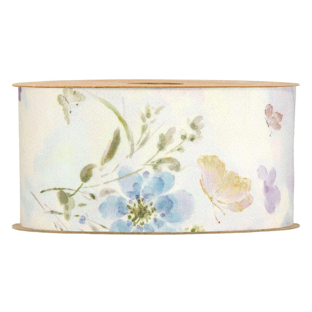 Ribbon with flowers and butterflies in printed polyester fabric Dimensions: 50 mm x 15 m