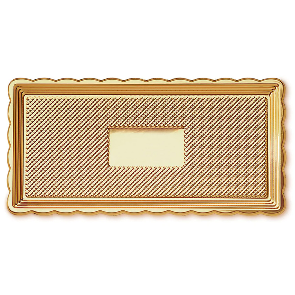 Practical and durable rectangular golden tray with non-slip bottom, does not get damp and does not absorb odours.