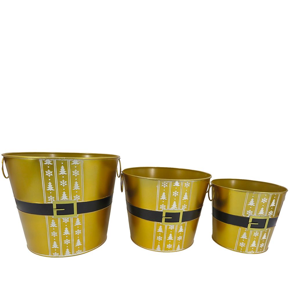 Set 3 gold Santa Clause vases n decorated metal, with side handles