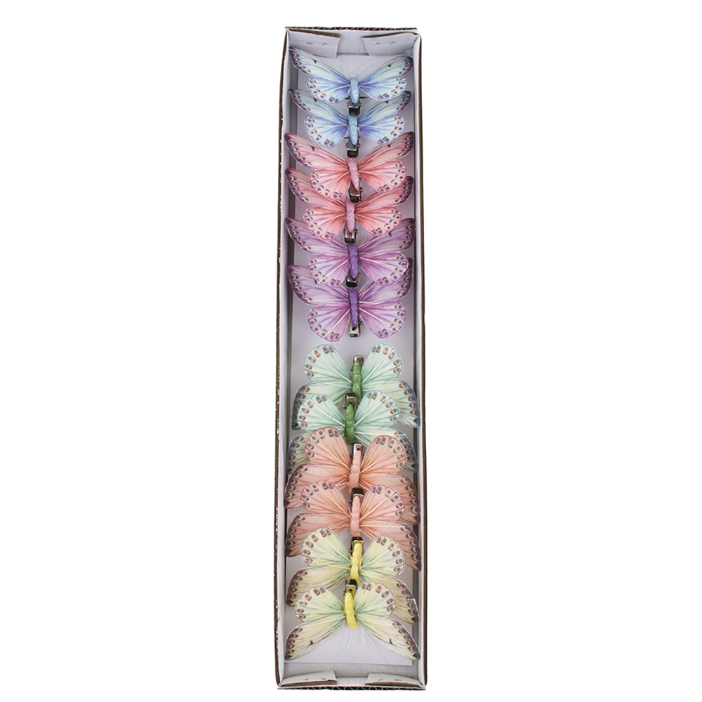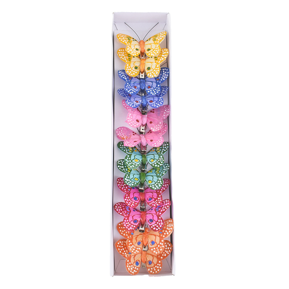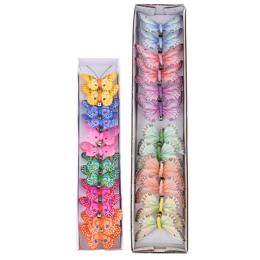 Set of 12 feather butterflies on clip, assorted colors Small: 6 cm Large: 8.5 cm
