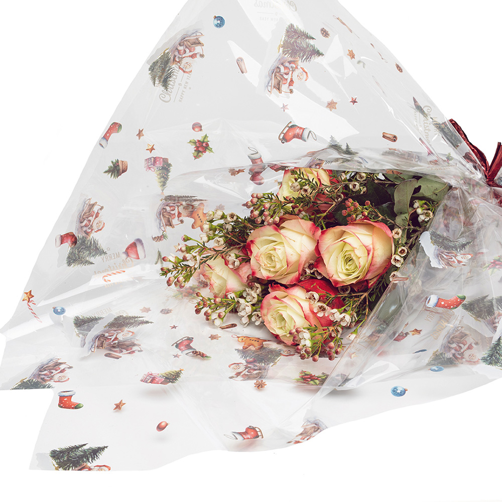 Pack of 50 transparent cellophane sheets with Santa Sleigh decoration cm.100x130 in printed transparent PPL, 30MY