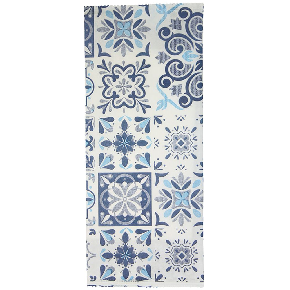 Set of 500 white paper cutlery holders with blue and light blue print, Sevilla model, with double napkin in pure cellulose.