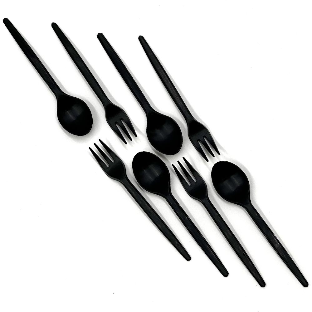 Set of 50 black finger food cutlery in mater-bi
