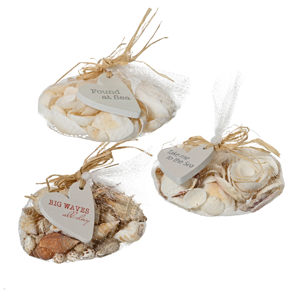 Shell Net in Natural Material with Wooden Heart Decoration Bundle size: 14×14×6 cm 3 assorted designs