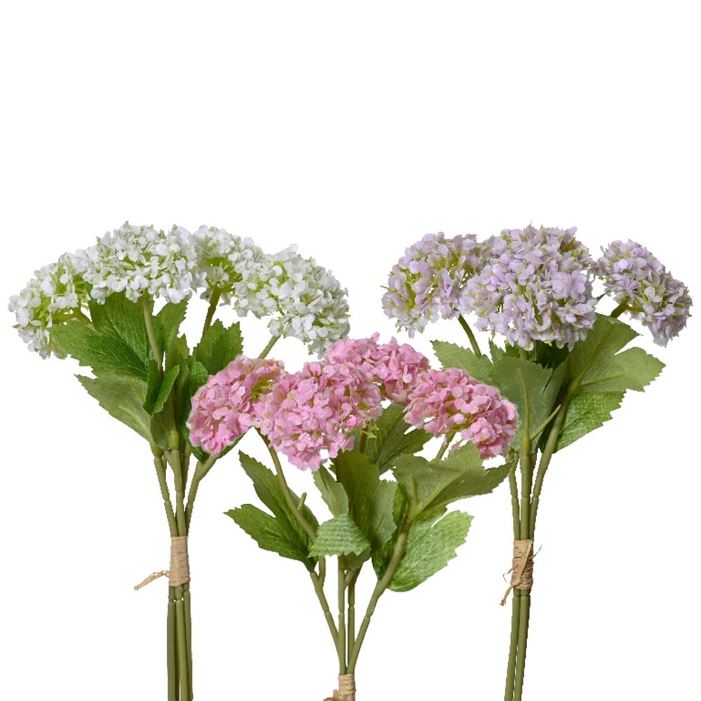Small snowflower bundle in polyester and PVC with leaves, in 3 assorted colors Dimensions: 30 cm height