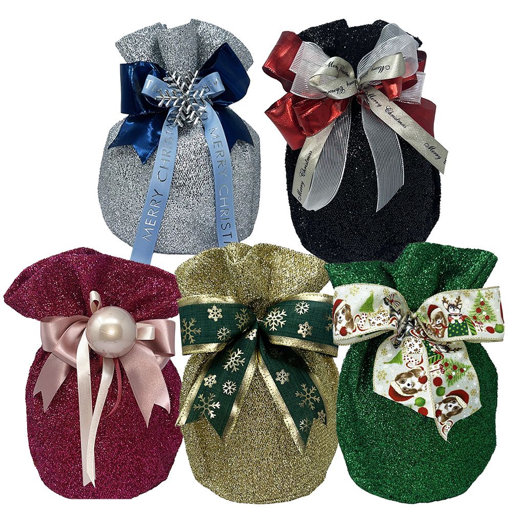 Sparkling bag, made of metallic bouclé-effect polyester fabric and drawstring closure.