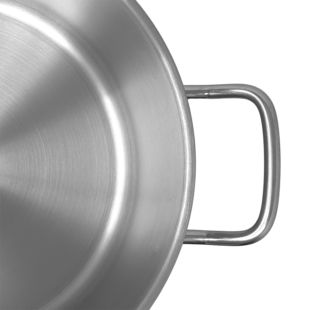 The welded handles, free of internal rivets, enhance hygiene and make cleaning easier by preventing residue buildup.