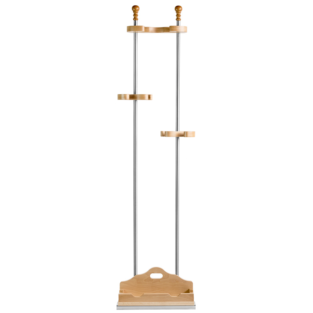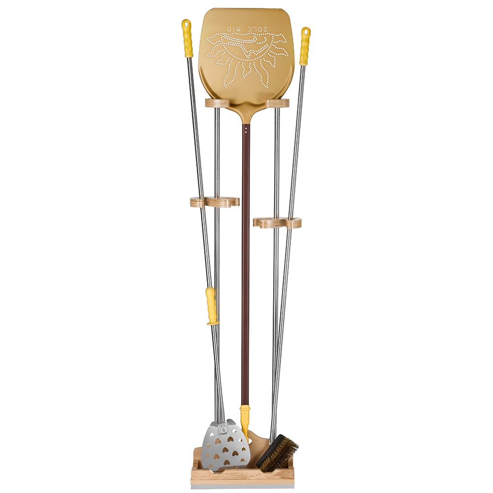 The universal wooden stand with 3 slots and peel rest is the ideal accessory for holding the essential tools of a pizzaiolo: launching peel, cooking peel, and oven brush.